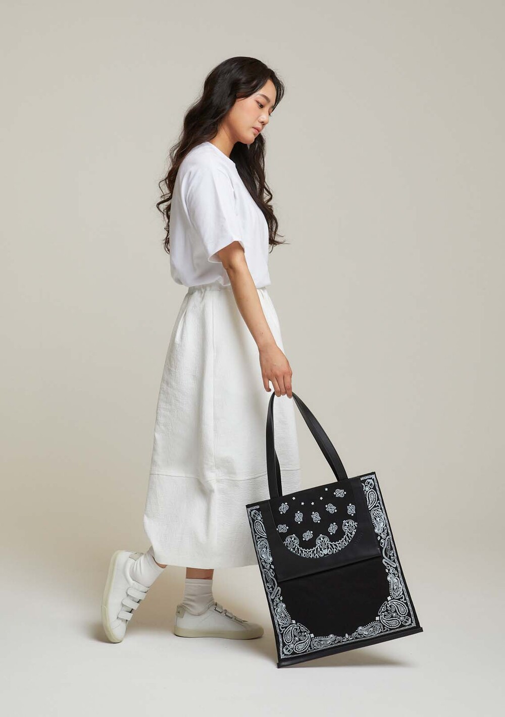 페이즐리 패턴을 사랑하는 핸드백 디자이너가 직접 선보이는 유니크한 페이즐리 디자인이 돋보이는 데일리 토트백입니다. 핸드백, 슈즈, 벨트 등 다양한 패션 액세서리 제작 경험에서 영감을 받아, 클래식한 페이즐리 패턴을 현대적으로 재해석한 수작업 드로잉 디테일에 주목해 주세요. 실용성과 예술성을 동시에 갖춘 토트백으로 당신의 일상에 특별함을 더해보세요.